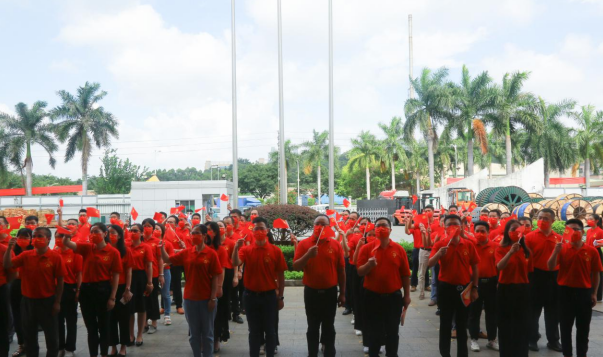 盛夏七月,热情似火!GGPoker公司已是党旗飘扬,处处洋溢着喜庆祥和的气氛。当日上午,身穿“中国红”T恤的党员等参会人员有序入场,列队数字“100”庆祝图案,表达对中国共产党的无限热爱。随着主持人一声令下,伴随着激昂雄壮的国歌声,护旗手奋力将鲜艳的五星红旗抛向天空,国旗迎着清晨第一缕阳光冉冉升起,全体人员庄重注视国旗,高唱国歌,脸上写满了骄傲与自豪。